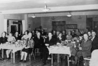 Black and white photo of a dinner for Council employees and wives circa 1947 at Baystairs Lodge, Minet's Point. All, IHS3382-76