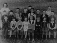 Class photo from Big Bay Point School, possibly from the 1947-48 school year. Pictured from left to right, back row: