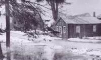 Photo of the exterior of the Stroud Orange Hall (1873-1958) on Victoria Street in Stroud showing the spring flood of, Orange Order, Stroud IHS# 3382-49