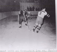 Candid photograph of a group of hockey players on a hockey rink in Newmarket. The two most visible players are wearing a, IHS3382-86D