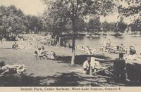 Post card showing Innisfil Beach Park. Note Alcona Beach Post office stamp on the message side., IHS3927