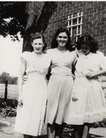 Photo from 1950 of three young eighth grade girls standing outside of Killyleagh School, S.S. #6. Pictured from left to, IHS678