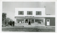 Photo of Young's Store in Stroud when it first opened in October 1950. The photo shows the front entrance to the store