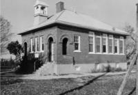 Black-and-white photograph of the Bethesda school building, a small brick schoolhouse with a hipped roof. A bell tower, IHS1922