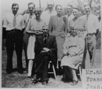 Family photo taken outdoors of Mr. and Mrs. R.A. Sutherland (seated) and their family. Pictured from left to right,, IHS3382-97B