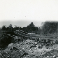 Photo of the devastation caused to railroad infrastructure north of Cookstown following Hurricane Hazel in October 1954.
