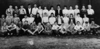 Back row (l to r): Ethel Todd (teacher) Jean Spence,Helen Sawyer, Ken Matchett, Stan Todd, Norman Priestly, Ron Zielke,, IHS1324