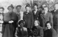 Back row: Harry J. Madle, Colin Sutherland, Joe Beleskey, Vernon Ayers, Wesely Willoughby, ____, Nancy Connel, Jennet, IHS827