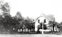 Photo of the exterior of the home of Mr. and Mrs. Dalton Lennox and Dorothy Lennox (née Vaughan), with Mrs. Lennox, IHS2290