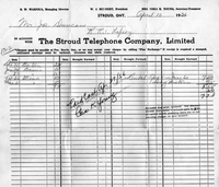 Copy of a bill from the Stroud Telephone Company billed to Mr. Joseph Duncan of R.R. 1 in Lefroy. The bill is dated to