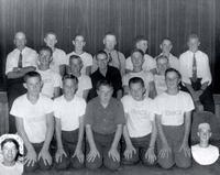 Back row: Ronnie Cook, Ted Stephens, James Neil, Hans Hagemeier, Harry Viveen, James Brady, Mr. Don Langford, teacher,, IHS174