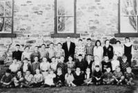 Photo of the senior room class of 1955-56 at the Painswick School with teacher Mrs. Martin. Pictured from left to right,