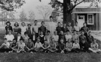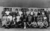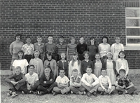 Alcona Beach Public School grade 6 to 8 class photo, 1963-64, with teacher Lloyd Ellesworth. Pictured from left to right, IHS4103