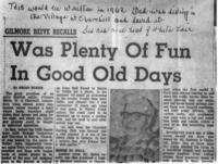 Newspaper clipping from the Barrie Examiner "Was Plenty of Fun in Good Old Days" about Gilmour Reive (1875-1963) of, IHS1534