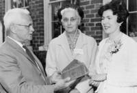 Robert Duncan and Mrs. William Robertson (nee Marjorie Ness) at the closing of Nantyr school., IHS2345