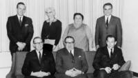 Posed group photo taken of the last School Board for Innisfil Township in 1965. Pictured from left to right - Back Row:, IHS406