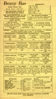 Copy of the Breeze Bar menu from 1968 featuring popular dishes such as the Breezeburger and various other types of