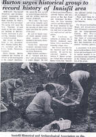 Copy of a newspaper clipping from the Barrie Examiner titled "Burton urges historical group to record history of, IHS2806