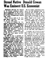 Newspaper clipping on the death of Donald Cowan, Professor of Economics., IHS3033AandB