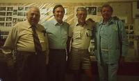 Photo of four men standing side-by-side posed in front of a picture display at the Cookstown reunion in 1984. Pictured