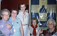 Photo of five women, Ethel Jebb, Eleanor Hayes, Lois Wardlaw, Mrs. Jim Dutton (of Peterborough), and Emily Ramsay,,
