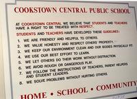 Photograph of a sign using black and red text posted at Cookstown Central Public School detailing guidelines of,