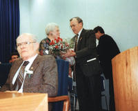 CEO Richard Groh presents Betty Fisher, Mayor Stewart Fisher's wife, flowers. Looking on is Councillor Paul Burkholder., IHS4297