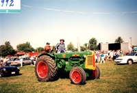 Image of a "Oliver 99" green tractor, participating in a parade associated with Cookstown Agricultural Society. The