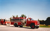 Photo of a red fire engine taking part in the Cookstown Fair Parade in 1992.,