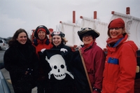 Staff of the library and family dressed as pirates to participate in the Santa Claus Parade. The photo includes Susan