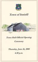 Scan of the programme of the Official Opening of Innisfil Recreation Complex and YMCA on 21 November 2008. The programme,