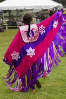 Image of the pink and purple shawl of a shawl dancer at the 2017 Celebrate Lake Simcoe Pow Wow at Innisfil Beach Park on