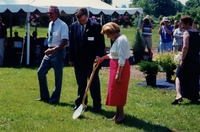 Photograph of Mayor Brian Jackson and an unidentified women holding the shovel for the ground breaking ceremony, another