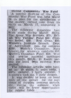 Newspaper clipping from the Barrie Examiner compiling the amount of money raised for war efforts, and items collected, 4451