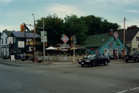 Photograph of a juntion in Cookstown, joining Highway 89 and Highway 27. Local restaurants can be seen on the corner of