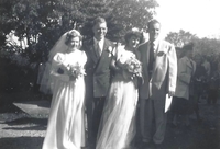 [L-R] Dorothy (Pratt) Peacock, Parker Peacock, Jean Thomas, Doug Peacock. Photograph taken outside at Parker Peacock and