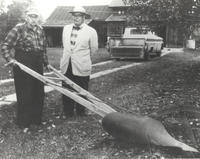 J.W. (Bill) Reid with his single plow and R.G. Simpkin, Barrie Examiner columnist. This is the plow that Mr. Reid used, IHS2203