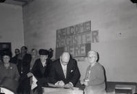 Hon. W. Earl Rowe - Lt. Gov. of Ontario signing the Registration Book with Mrs. Mary Nevils.,