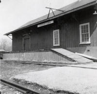 Photo of the track-side of the Cookstown CN rail station, taken when the station was closed in April 1967. The photo,