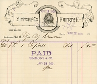 A bill issued to Mary Duncan of Stroud from Simmons and Co. Furriers Etc. in the amount of $20, dated to 15 April 1909.