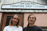 Photo of James and Frank, builders and repairers of fine furnishings for Cookstown Furniture Repair, standing just below,