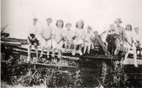 The Donnelly family pictured sitting on an old rail fence between the Donnelly farm and Robert Boyes' farm. From left to, IHS574