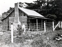 Photo of the exterior of the McMurrich log cabin, located on De Grassi Point. John Atkinson (Mrs. Bertha Stewart's, IHS281