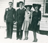 Photo of Bert Hounsome, Verlie Harris, Randolph Harris, and Edna Hounsome on the occasion of Randolph and Edna's wedding