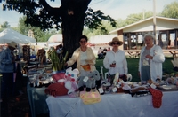 A photograph taken at Summerfest, 1999, showing three women standing behind a stall, selling goods to the public. [L-R]