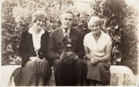 Beatrice McFadden, James Taylor, and Miss Minnie Spence -- and Dog "Derry"