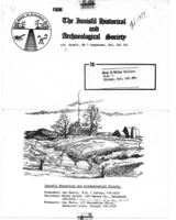 Image taken in June, 1932, of a barn raising taking place at Mr. and Mrs. Cyril McDonald's farm. A group of men can be, IHS1457