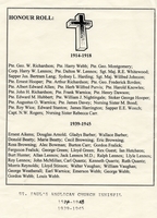 Typed "honour roll" or list of names of parishioners of St. Paul's Anglican Church in Innisfil who had served in World