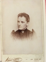 Undated photo of Emma Cooke as a young woman. She is wearing a high-necked dress with puffed shoulders and a bow-shaped