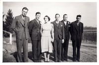 Black and white photo taken of the Constable family in 1946. Pictured from left to right, back row: Mac Constable, Jean